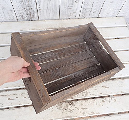 - ガーデニングやデコレーション用に人気となっている、アンティーク風の木箱です。ヨーロッパで農作物の収穫に使われた古い木箱を模した製品で、味わいのある色合いと質感があります。庭において鉢花を飾ったり、道具入れや土入れに。横に倒して何個かを積み上げれば棚やテーブルのようにも使えます。壁に取り付けてデコレーションボックスにして花を飾るのもすてきです。天然木で作られているので、直接土を入れて植物を栽培すると、板が反り返ったり黒ずんだりします。土を入れる場合は、ビニールシートを内部に敷いてご利用いただけば、耐久性が高まります。防腐塗料は施されていませんので、ある程度の期間が過ぎると傷んできますのでご了承ください。アンティーク仕上げを施しているため、木材のキズや節、かけ、色目のムラなどがありますが、これらも味わいのうちとご理解ください。サイズ:縦45cm×横29.5cm×高さ13.5cm(やや個体差があります)材質:木製中国製※写真はイメージです。