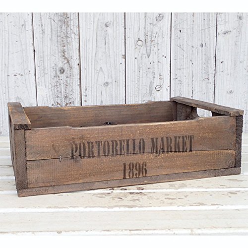 ガーデニングやデコレーション用に人気となっている、アンティーク風の木箱です。ヨーロッパで農作物の収穫に使われた古い木箱を模した製品で、味わいのある色合いと質感があります。庭において鉢花を飾ったり、道具入れや土入れに。横に倒して何個かを積み上げれば棚やテーブルのようにも使えます。壁に取り付けてデコレーションボックスにして花を飾るのもすてきです。天然木で作られているので、直接土を入れて植物を栽培すると、板が反り返ったり黒ずんだりします。土を入れる場合は、ビニールシートを内部に敷いてご利用いただけば、耐久性が高まります。防腐塗料は施されていませんので、ある程度の期間が過ぎると傷んできますのでご了承ください。アンティーク仕上げを施しているため、木材のキズや節、かけ、色目のムラなどがありますが、これらも味わいのうちとご理解ください。サイズ:縦45cm×横29.5cm×高さ13.5cm(やや個体差があります)材質:木製中国製※写真はイメージです。