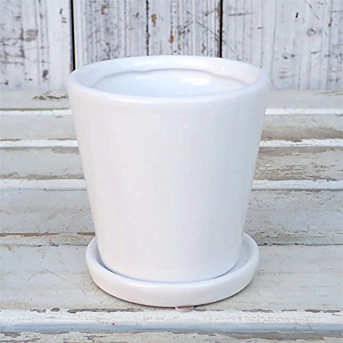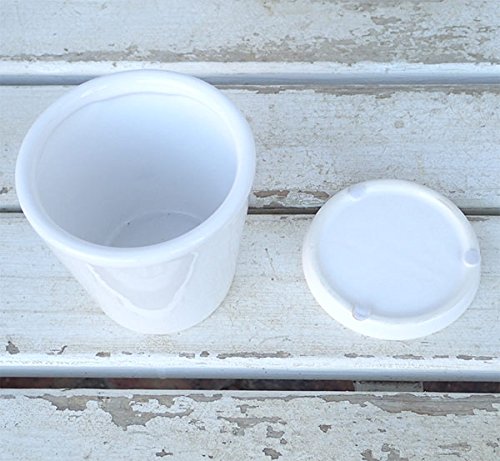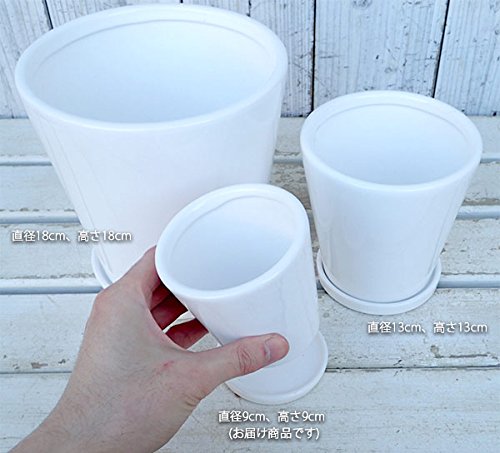 - サイズ:直径9cm、高さ9cm 材質:釉薬陶器 色:ホワイト・艶あり 底穴あり・受け皿付き