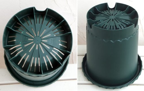 バラの植え込みにおすすめのプラスチック鉢。傾斜の少ない深めの円筒形で、根が張りやすく移植しやすい形状です。また、側面に大きな通気孔があり、風通しを良くして根腐れを防ぎます。鉢底は傾斜のある排水穴になっており、上げ底となっているので、害虫の進入を防ぎ地熱等からも根を守る設計です。サイズ:直径30cm、高さ30cm容量:11リットル材質:ポリプロピレン(株)リッチェル製英国王立園芸協会日本支部の推奨品です。