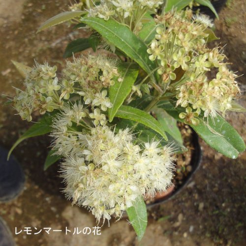 - タイプ:フトモモ科半耐寒性常緑高木 学名:Backhousia citriodora 植え付け時期:春 鑑賞時期:通年 栽培方法: 日当たり~半日陰で土質は中性~アルカリ性の肥沃な土壌が適しています。植え替えは4月頃が適期です。成長期には月に1回程度等倍の液肥を与えます。水やりは、土が乾いたらたっぷりやるようにします。冬は最低気温7~8度を保ち、水やりの回数を減らしてください。剪定は春半ば~晩春頃に伸びた枝や込み合った枝などを整姿する程度行ってください。