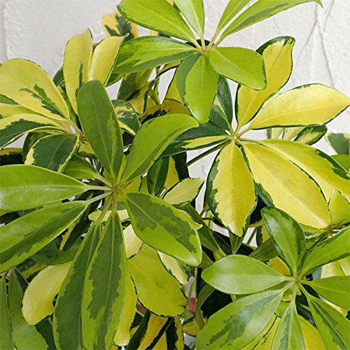 - シェフレラは手のひらを広げたような葉を茂らせる常緑低木。日当たりがあまり良くないところでも、艶やかな葉の状態を保ち、インテリアグリーンとして人気です。よく「ホンコンカポック」の名前で流通していますが、カポックとは別の植物です。観葉植物の中では耐寒性が強い方で、関東以南の太平洋側では戸外で元気に冬越しする姿もよくみられるほど。それほど明るい場所でなくても元気に育ち、乾燥にも強く、とても育てやすいです。ただ、日に当てた方が葉の色つやが良くなりますので、室内では明るい窓辺などで管理してください。ハッピーイエローは葉に不規則な黄色の斑が入ります。タイプ:ウコギ科シェフレラ属の常緑低木耐寒温度:0度以上(直接霜の当たらない場所)管理方法:耐陰性は高いですが、日光にあてるとよく育ちます。5月から10月はなるべく戸外の日当たりのよい場所に、それ以外は室内の日当たりのよい場所に置いてください。やや湿り気のある土壌を好みますので、5~10月の生育期には、土が乾きはじめましたら水をたっぷり与えます。また、この期間は2ヶ月に1度観葉植物用の置き肥を根元に施してください。※写真はイメージです。