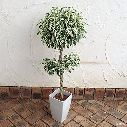 - 斑入り葉ベンジャミン(スターライト・ビューティ・クイーン)の美しいスダンダード仕立て鉢植えです。春から秋まで戸外の農場でしっかりと作りこまれた株です。生育旺盛で、明るい斑入り葉を次々に伸ばします。日差しにも強く葉焼けしにくいので冬以外は戸外で管理できます。もちろん、耐陰性もあるのでリビングや店舗などの観葉植物としておすすめです。ベンジャミンはNASA(アメリカ航空宇宙局)の研究で、密閉された空間の有害物質(ホルムアルデヒドやトルエン、キシレン等)を吸着し、分解・除去する効果があることが認められた植物。室内に飾ると、環境改善効果も期待できます。