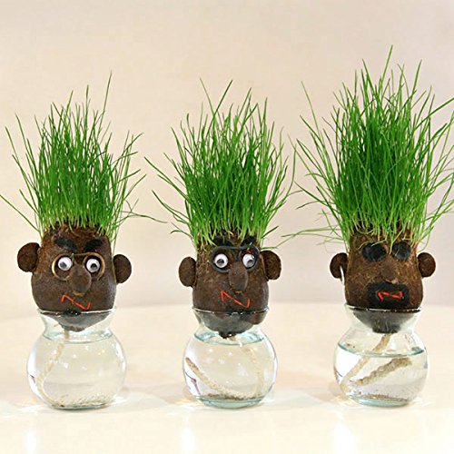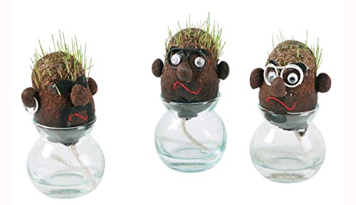- 口ひげ&真っ黒サングラスに、インテリメガネ。やんちゃなボーイズ3人組でお届け致します。「何気なく目に入った瞬間に思わず“クスッ”と笑ってしまう…」それがhairLABOのコンセプト。まるで頭から毛が生えているかのように、頭頂部から芝が伸びてきます。ある程度髪の毛(芝)が伸びてきたら、ハサミで好きなようにカット!ショートヘアーやハードロック、たまねぎ頭まで色々な髪型を楽しんで頂けます。サイズ:9cm(本体)栽培方法:最初に頭を2時間程水に浸しておき、後は付属の小瓶に水を入れ給水させます。頭は定期的に水浴びさせると良いでしょう。暖かい場所であれば2~3日で芽が出てきます。30℃以上の場所で管理すると夏枯れを起こすので、夏場は涼しい場所に置きます。伸びた草を短くカットしたら液体肥料を与えます。※最初に頭をしっかりと水に浸しませんと発芽しない場合がございます。ご注意ください。表情などそれぞれ個体差があります。