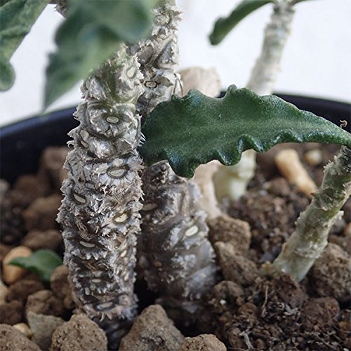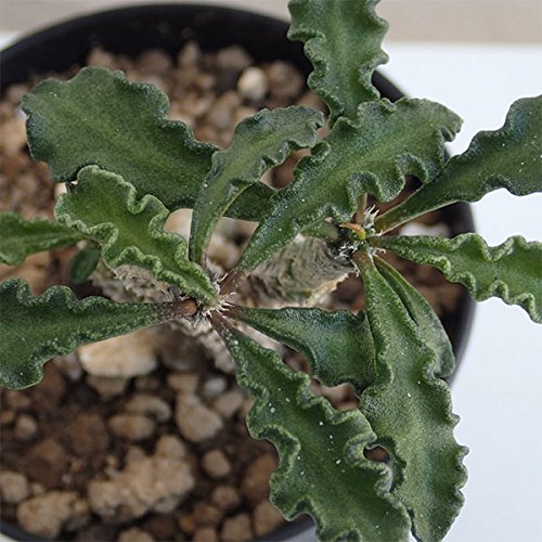- デカリーはマダガスカル原産で希少な小型の塊根植物。やや横向きにごつごつした枝を伸ばし、先端に縮れた葉をつけます。葉は冬には紫がかった褐色になります。「ちび花キリン」とも呼ばれます。成長は非常に遅く、根元が塊根状になるのも年数がかかります。なるべく日当たりのよい場所で育ててください。学名:Euphorbiadecaryi園芸名:ちび花キリンタイプ:トウダイグサ科ユーフォルビア属原産地:マダガスカル日照:日向むき耐寒温度:5℃管理方法:室内で管理できますが、日光が不足すると間伸びしますので、なるべく明るい場所で管理して下さい。生育適温は20~30℃程度ですが、8℃以上あれば越冬には問題ありません。乾燥には強いのですが、水のあげ過ぎにならないようにご注意ください。特に低温時ですと根腐れをおこしますので、気をつけて下さい。※写真はイメージです。