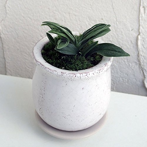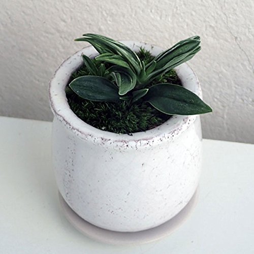 [縁起物・新居祝いやギフトに!]万年青 (おもと):瑞泉 陶器鉢植え(皿付)ステララウンド白SS ノーブランド品