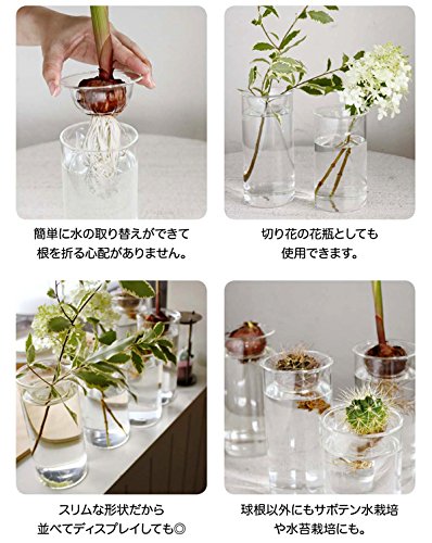 - 多肉植物やサボテン、球根の水栽培ができるガラス製花瓶。シンプルでモダンなデザインの水栽培用ガラスポットです。植物を置く上部の皿と水入れが別になっているので、かんたんに水の取り換えができます。その他、切花を生けるフラワーベースとしても使え、年間を通じて季節に合わせて楽しめます。上皿は長めの切花を倒れにくくしたり、少量の切花をまとめるのにも便利。上皿を外してミズゴケ栽培用の容器としてもご利用いただけます。写真は使用時のイメージです。★この商品に球根は含まれていません。サイズ:直径8cm(皿の穴:直径3.5cm)、高さ13cm※ガラスはすべて手作りのため、サイズや厚みが異なったり、気泡が入ることがあります