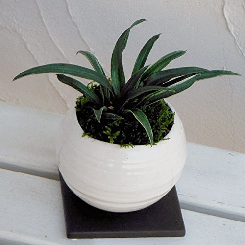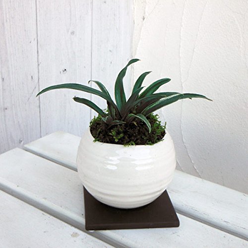 [縁起物・新居祝いやギフトに!]万年青 (おもと) 白丸型陶器鉢Sサイズ植え・角受け皿付き ノーブランド品