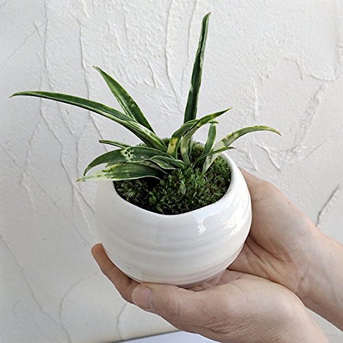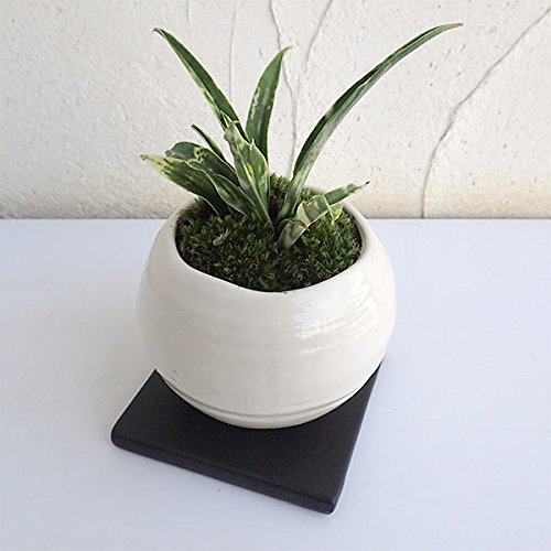 [ギフトに]万年青 (おもと):姫牡丹鉢植え/和風白鉢・角受け皿付き ノーブランド品