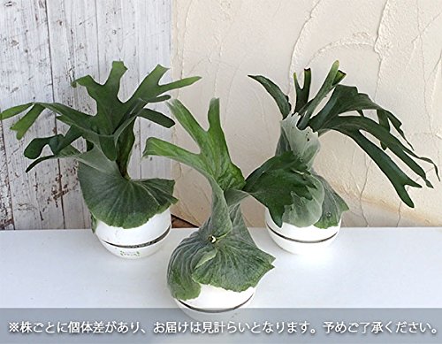 - タイプ:ウラボシ科のビカクシダ属原産:オーストラリア・ニューカレドニア等の温帯雨林や熱帯雨林生育適温:20~30℃耐寒性:乾燥気味で7℃以上日照:半日陰を好む管理方法:本来樹幹に着生する植物ですので、ヘゴ板等に紐で縛り、吊り下げて楽しむことが可能です。