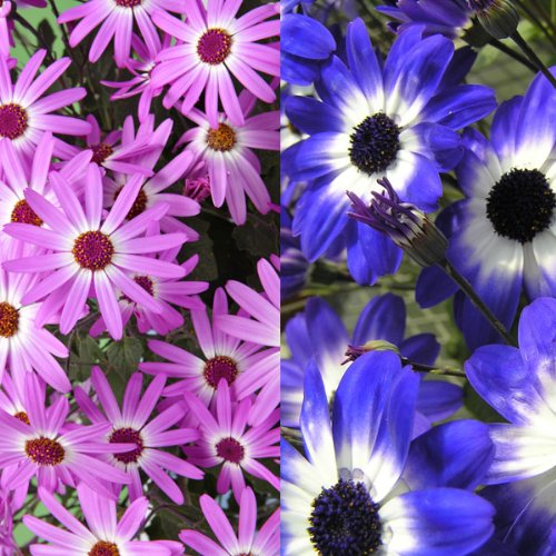 サイネリア:セネッティ豪華咲きラベンダーバイカラーとブルーバイカラー5号鉢植え2種セット