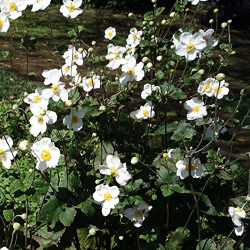 シュウメイギク(秋明菊):ホワイト5号鉢植え[鉢植えで楽しむ白一重のシュウメイギク]