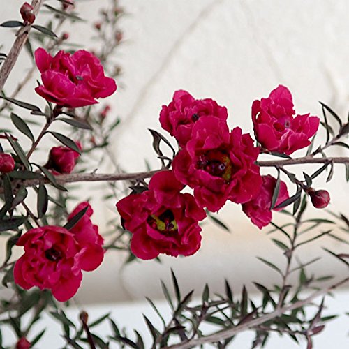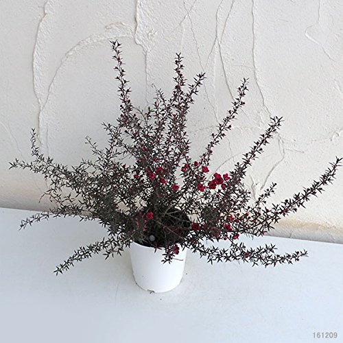 - 早春の花、ギョリュウバイ。ニュージーランド原産のティーツリーの仲間です。小さな葉を茂らせる常緑低木で、梅の花に似た花を冬から春にかけて開花させます。開花期間が長く丈夫で育てやすい花木なので、春先の鉢花として人気です。庭に植え替えると年々大きくなり、最大樹高は3~4mになります。耐寒性はマイナス7度まで。この品種は赤花八重の花です。タイプ:フトモモ科の半耐寒性常緑低木樹高:1~4m開花期:11~3月日照:日向むき栽培方法:春から秋は戸外の日当たりのよい場所におきます。やや湿った場所を好みますので、鉢植えの場合は鉢土の表面が乾いたらたっぷり水遣りしてください。冬は凍らない暖かい場所で管理します。枝先を剪定すると多くの小枝が出て樹姿が整います。病虫害はほとんど出ません。4号(直径12cm)鉢植え、樹高約20cmです。樹高は多少前後いたします。