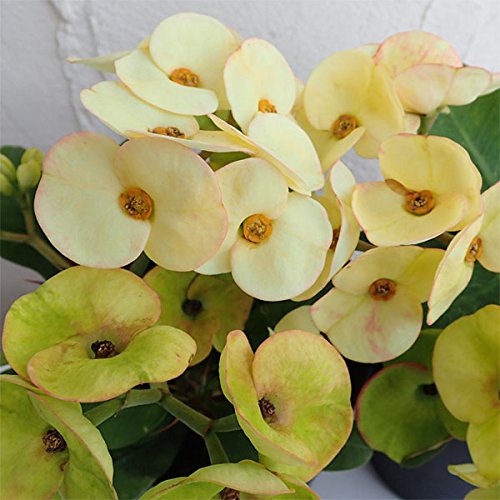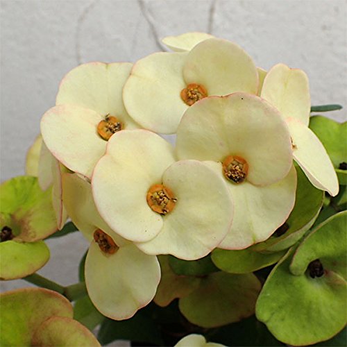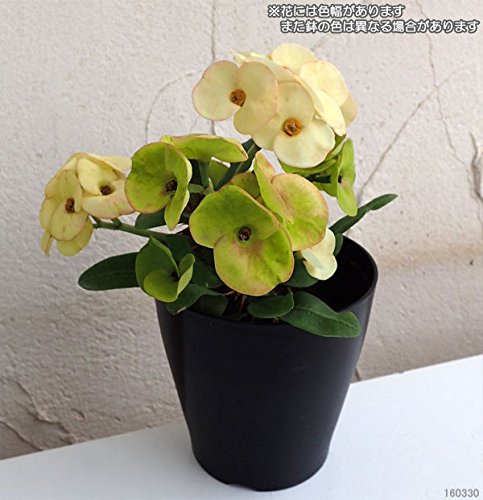 - 学名:Euphorbia milii タイプ:トウダイグサ科ユーホルビア属の常緑性多年草 原産地:マダガスカル島 草丈:30~90cm 開花期:日中20度以上30度以下夜間15度以上 3万ルックス以上の光量が当たれば年間を通じて開花 花径:2~3cm 用途:鉢植え 日照:日なた