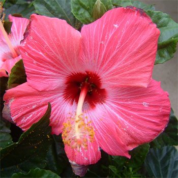 ハイビスカスは夏の代表的な熱帯花木です。 次々に花を咲かせ、花色もバラエティに富んでいます。 ハワイアンタイプは主にハワイで品種改良されたものでハイビスカスの中でも最も品種が多く、花が大きく豪華です。 花弁の幅が広いので、花弁が重なり合い花の形がほぼ円形に見えます。 ピンクレディーは濃いピンクの地で中心部は深紅の鮮やかな花です。 タイプ:非耐寒性常緑低木開花期:4月~8月栽培適地:日本全国(鉢植えにして、10月~4月は室内にて管理)日照:日向むき栽培方法:5月から9月までは戸外の日当たりのよい場所に置きます。