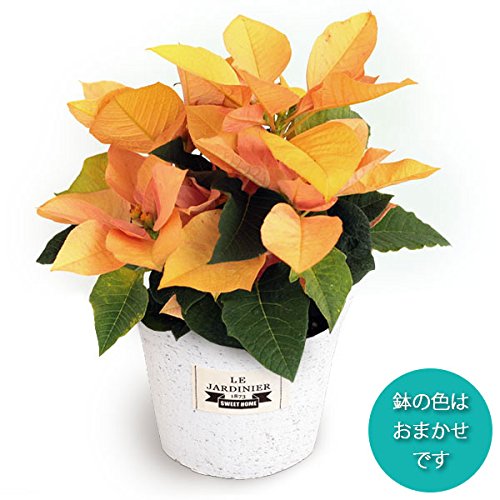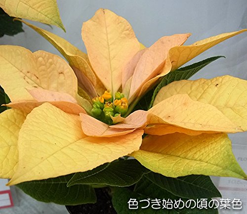 - 学名:Euphorbiapulcherrima'EckespointGold'タイプ:トウダイグサ科ユーフォルビア属の非耐寒性多年草原産地:メキシコ管理方法:置き場所は明るい室内が最適です。 寒さが苦手なので、温度は最低でも6度以上、なるべく夜間も10度以上で管理します。 水遣りは控えめにし、1週間から10日に1回を目安に、鉢土の表面が乾いたらたっぷり水やりして鉢底から余分な水を流しきります。 鉢皿には水をためないようにしてください。 春先まで追肥は不要です。 ★直径11.5cmプラ鉢植えです。 鉢の色は見計らいでのお届けとなります。