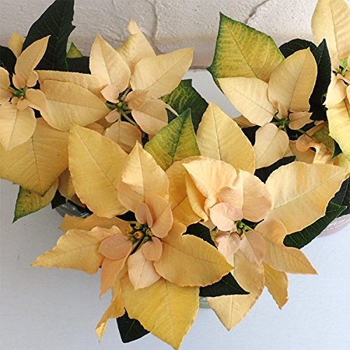 - 秋のハロウィンシーズンから楽しめる、明るいゴールドカラーのポインセチア。 ホウの色がピーチイエローからゴールド(オレンジイエロー)へ時間をかけて変化する特徴的な品種です。 輝くような色合いは、ハロウィンからクリスマスシーズンにかけてのデコレーションにぴったり!株のまとまりがよくゴージャスな色合いが長く楽しめる品種です。 ポインセチアの育種で最も歴史の長いポールエッケプランド社の育成品種です。