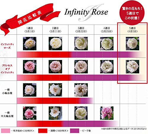 - ポットローズ史上最高傑作!デンマーク発のバラブランド、ローズフォーエバー社の新ライン・インフィニティローズシリーズは、常識を超えた花持ちの良さと、ぜいたくな大輪花のポットローズです。 直径約7cmの豪華なバラが、開花からなんと5週間近く美しさを保つという、驚きの花もち。 これまでのバラの常識を覆す、美しい鉢花です。 3.5号プリントプラ鉢植え。 写真は満開時のイメージです。 お届け時の状態は蕾のみ~開花株のいずれかとなります。 開花期:3月~12月樹高:20~30cm管理方法:よく日の当たる、風通しの良い戸外が適しています。