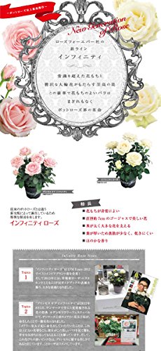 ポットローズ史上最高傑作!デンマーク発のバラブランド、ローズフォーエバー社の新ライン・インフィニティローズシリーズは、常識を超えた花持ちの良さと、ぜいたくな大輪花のポットローズです。 直径約7cmの豪華なバラが、開花からなんと5週間近く美しさを保つという、驚きの花もち。 これまでのバラの常識を覆す、美しい鉢花です。 3.5号プリントプラ鉢植え。 写真は満開時のイメージです。 お届け時の状態は蕾のみ~開花株のいずれかとなります。 開花期:3月~12月樹高:20~30cm管理方法:よく日の当たる、風通しの良い戸外が適しています。