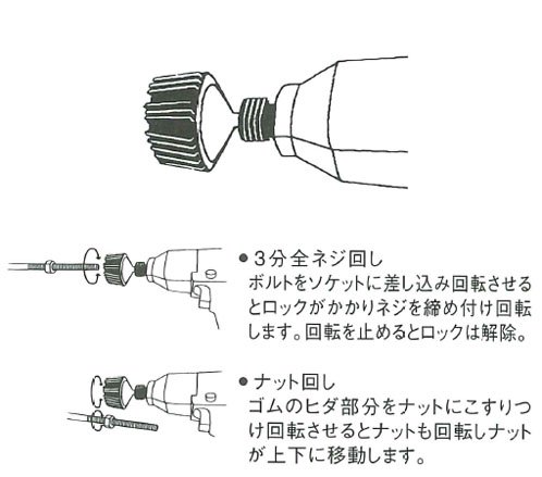 ●【用途】全ネジまわし・ナット回しを簡単、スピーディに行えるゴム付ソケット。●【機能・特徴】ゴム部分は取り換え可能(別売)です。●【材質】特殊鋼。ゴム。