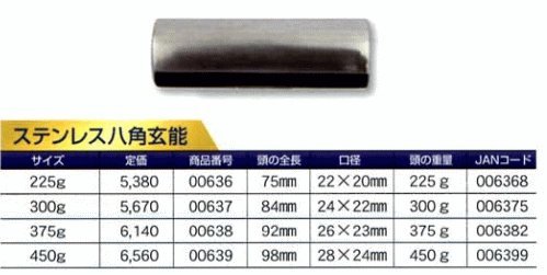 土牛 DOGYU ステンレス玄能 頭のみ ステンレス八角玄能 375g 00638