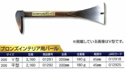 土牛 DOGYU インテリア用バールシリーズ ブロンズインテリア用バール 200 平型 01292