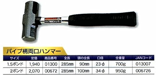 土牛 DOGYU パイプ柄石頭鎚/両口ハンマー パイプ柄両口ハンマー 2ポンド 00672
