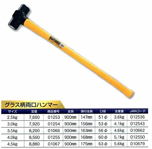 土牛 DOGYU 大ハンマー グラス柄両口ハンマー 3.5kg 01066
