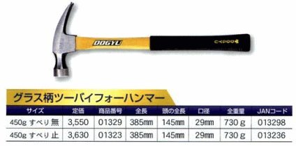 土牛 DOGYU 2×4ハンマー グラス柄ツーバイフォーハンマー 450g すべり 無 01329