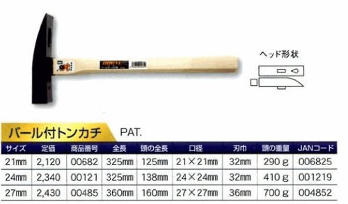 土牛 DOGYU 木柄トンカチ鎚(煉瓦鎚)ひつ付 バール付トンカチ 21mm 00682