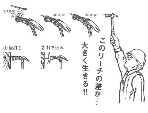 磁石式の釘の仮止め機能が使いやすさをさらにひろげました。