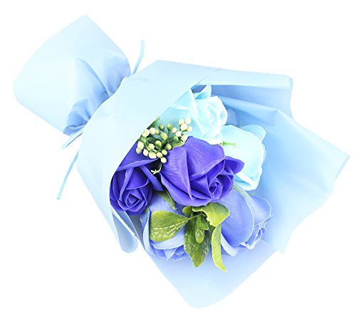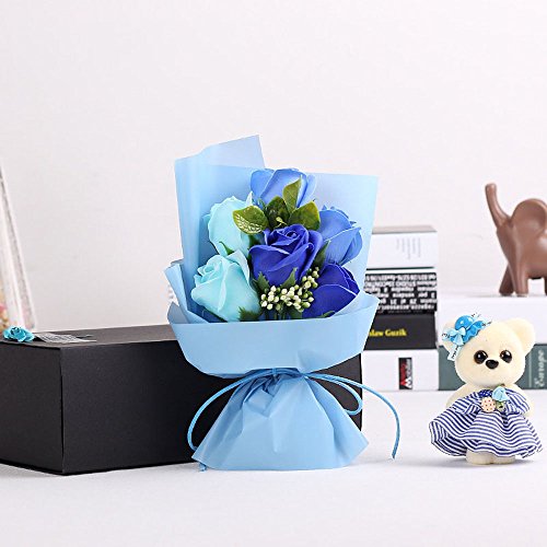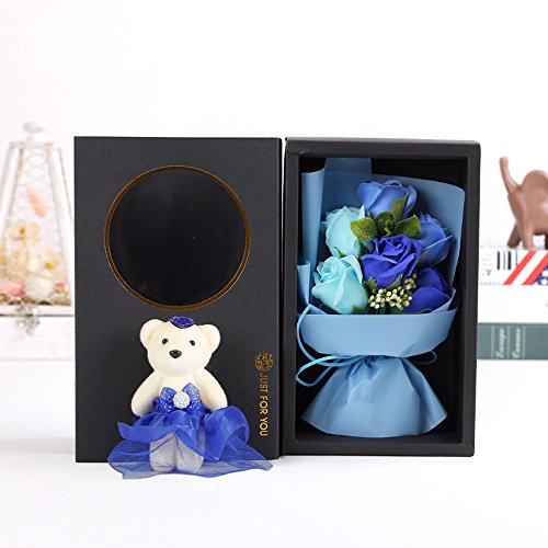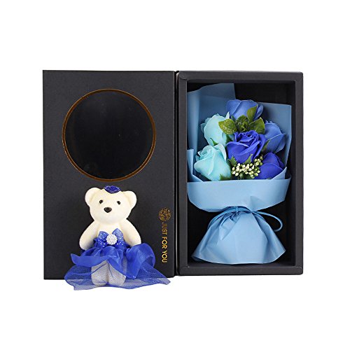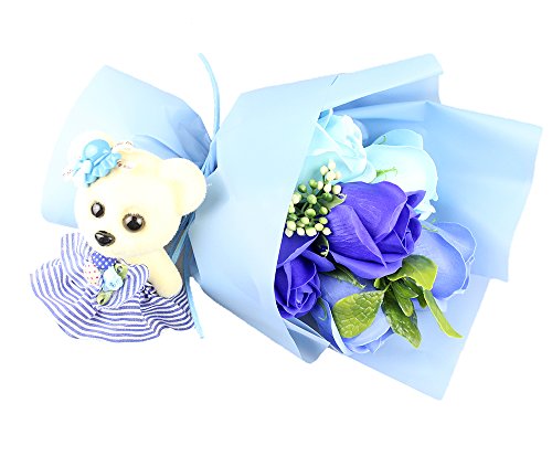 Arbeflo 造花 バラ 可愛い熊の人形付け 結婚花束 プレゼント ギフト 贈り物 お誕生日 告白 母の日 結婚祝い 出産祝い (ブルー)