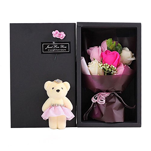 Arbeflo 造花 バラ 可愛い熊の人形付け 結婚花束 プレゼント ギフト 贈り物 お誕生日 告白 母の日 結婚祝い 出産祝い (ピンク)