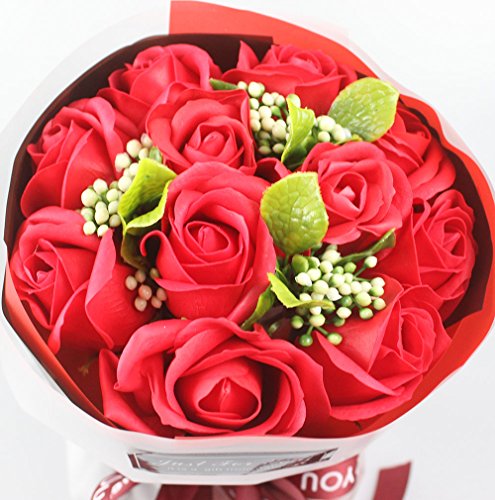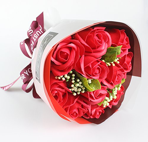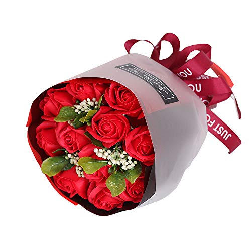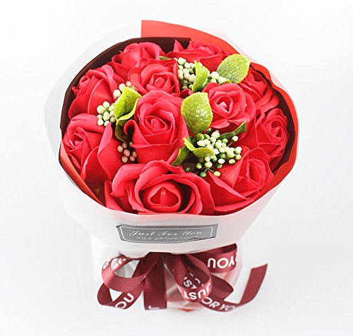 Arbeflo プレゼント 花束 フラワーギフト 手作り花束 石鹸花 プレゼント バレンタインデー 母の日 誕生日 結婚祝い 結婚記念日 (レッド)