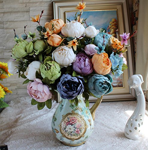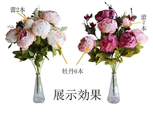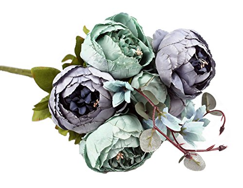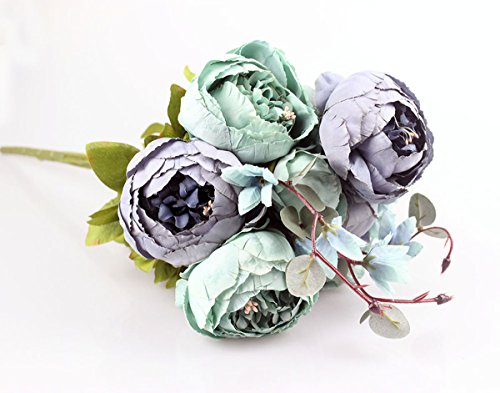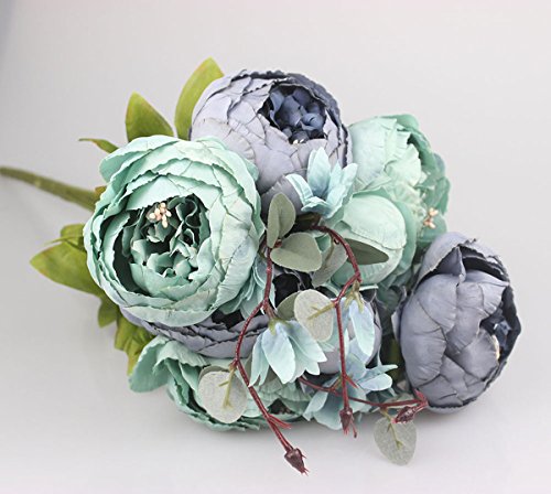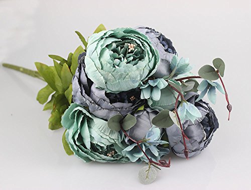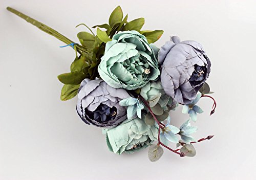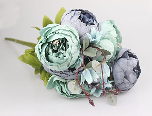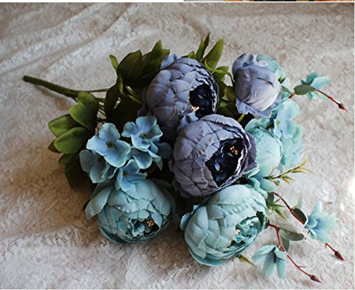 Arbeflo 造花 牡丹 ボタン 花束 8本セ ット パーティー用 飾り 装飾花 インテリア ローマンチック ギフト 結婚式 (ブルー)