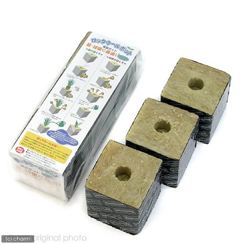 ●【商品説明】●「ロックウール ポット100 3個入」は、通気性・保水性に優れ、挿し木・種まきに適した育苗ブロックです。●ロックウールとは高炉スラグと岩石を高温で焼いて線状にしたもので、pH濃度を植物に良い弱酸性に保つ効果があります。●成分が均一で安定しているので生育のコントロールがしやすく、軽くて、土の流出もなく清潔です。●また、無菌のため挿し木・種まきに適しています。●イチゴパック・トレー等の容器を用意してまとめて植えると後で水やりがしやすいです。●【使用方法】●ロックウールに種を撒き、または挿し木をし、水を与え栽培する。●【使用上の注意】●目に入った場合は異物感がなくなるまで清水で洗浄する。●目を擦ってはならない。●皮膚につき、かゆみを感じる場合は、石鹸水で洗浄し、やや熱めの温湯で洗い流す。●外観に変化が見られたり、痛みが続く場合は直ちに医師の手当てを受ける。●【素材】●ロックウール95%-99%フェノール樹脂またはその変性物1%-5%●【原産国】●日本●【お問い合わせ先】●TEL:0745-53-1021●まとめ買いの場合、システムの仕様で...
