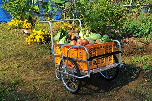 備考:折りたたんで車に積み込めるコンパクトなリアカー。家庭菜園などでの収穫野菜の運搬、水タンクの運搬など重たいものも楽に運べます。タイヤはノーパンク仕様なので舗装の悪い場所でも安心です。