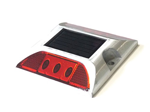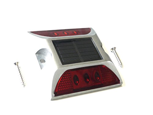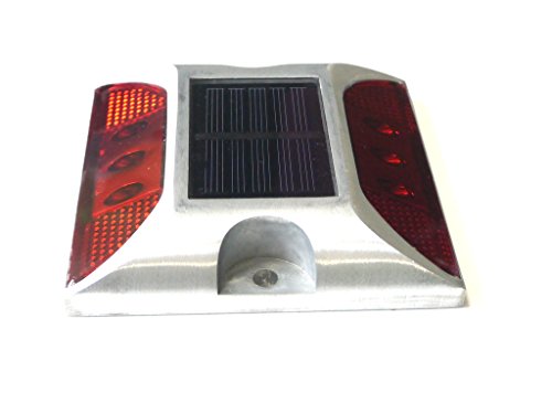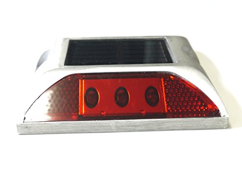 ソーラー 充電式 自動 点滅 6LED 道路鋲 路肩標 誘導灯 (レッド)