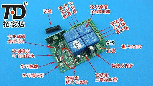 DC12V ワイヤレスリモコン リレー スイッチ 4チャンネル