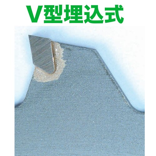 ・縦埋込型(切れ味抜群)+斜埋込型(耐久性抜群)=V型チップ