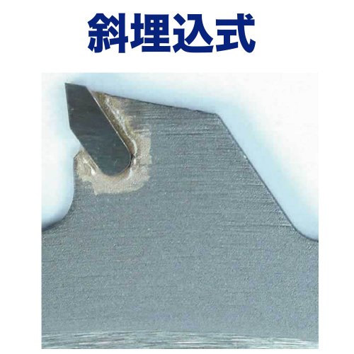 ・耐久性:斜埋込型で衝撃性に優れチップの脱落、破損が少なく、又再研磨が可能。