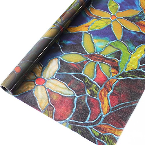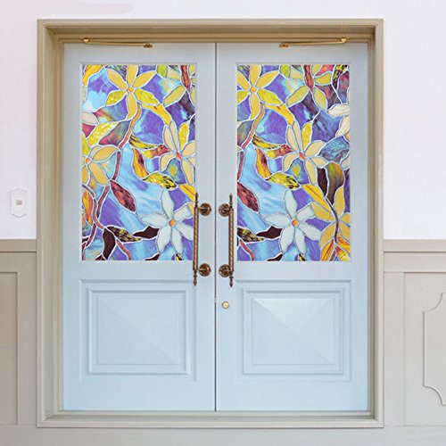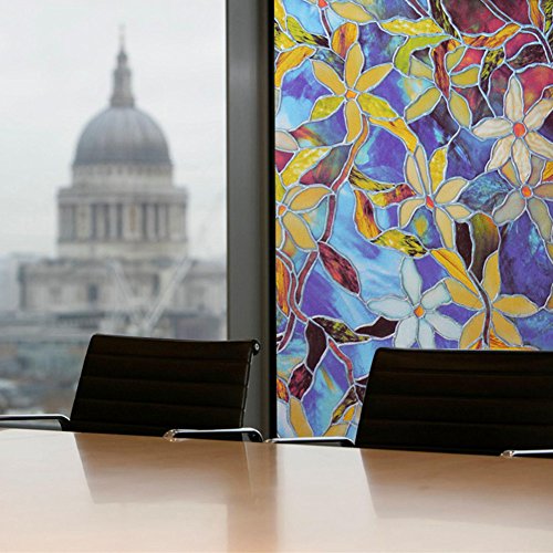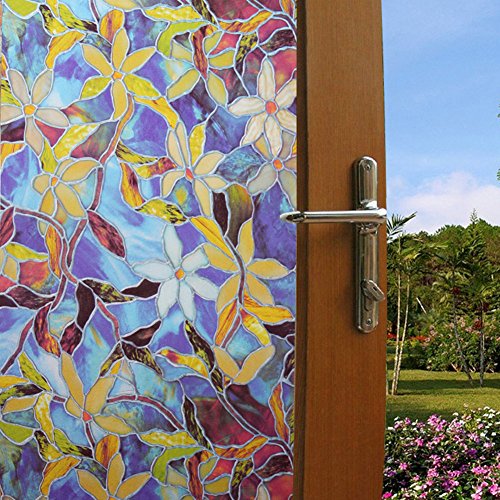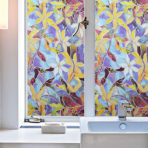 【窓 防犯 目隠しシート】 再利用可能 地中海の蘭 不透明 自分で貼れる 飾り 防紫外線ゴム無し ≪NO.20≫ (90CM×200CM, NO.20 地中海の蘭)