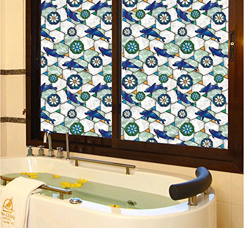 窓ガラス 不透明 プライバー保護 断熱フィルム 青い 海 イカル 家具の色褪せを低減 夏は涼しく 水接着タイプ ≪NO.11≫(60CM×200CM, 011)