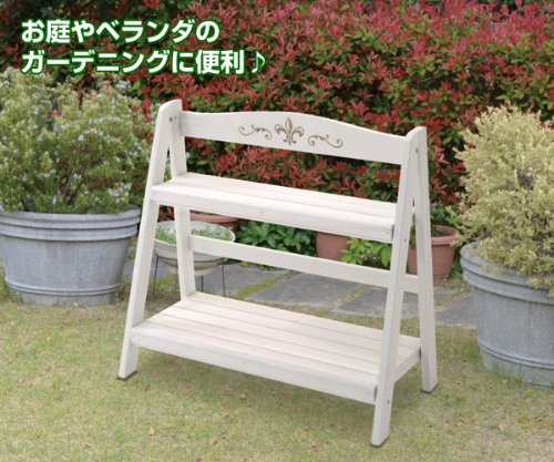 山善(YAMAZEN) ガーデンマスター 木製プランタースタンド 幅69cm 2段 ホワイト KPS-69662 WH