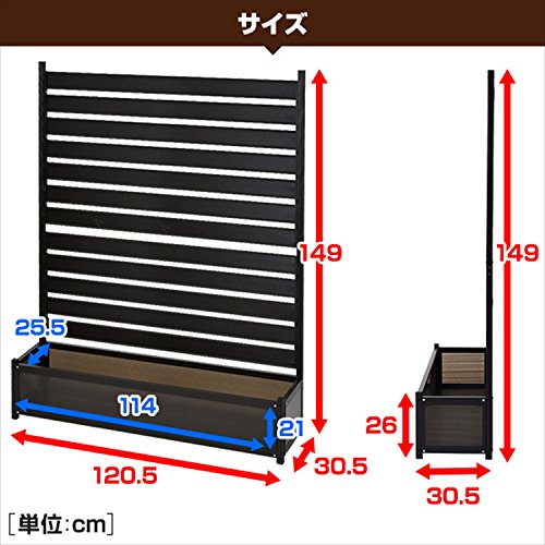 ●組立品です●組立時間:約30-40分●簡単DIYでできる本格的なアルミ製プランターフェンス●アルミ製なので木製に比べて耐久性が高く、定期的な塗装も不要●目隠しにも使えておしゃれなプランターフェンス●プランター部内寸:幅114×奥行25.5×高さ21cm