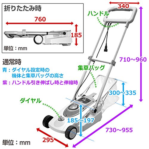 - ●付属品:集草バッグ、延長コード10m、ボックススパナ・ドライバ、スパナ、コードストラップ、ベルトフック