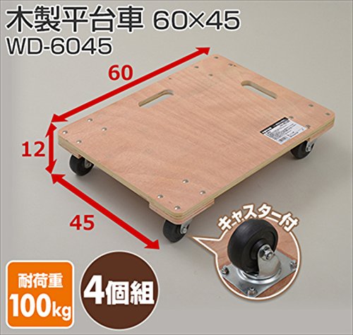 山善(YAMAZEN) 木製平台車(60×45) 4個組 WD-6045*4
