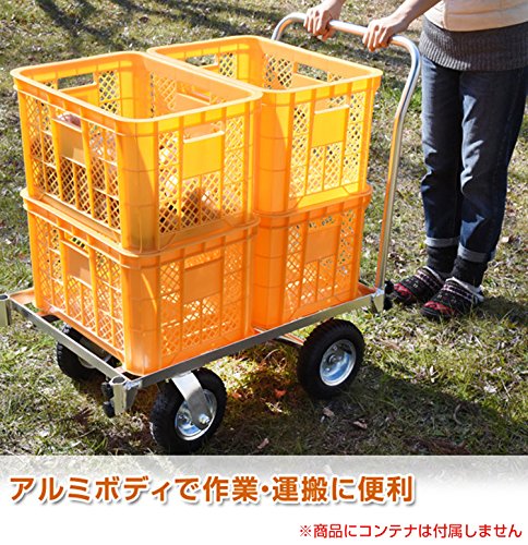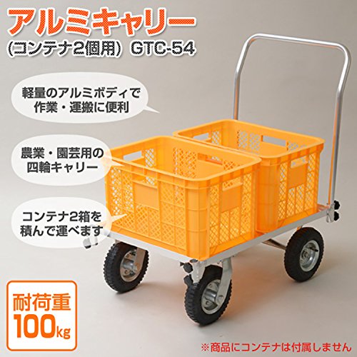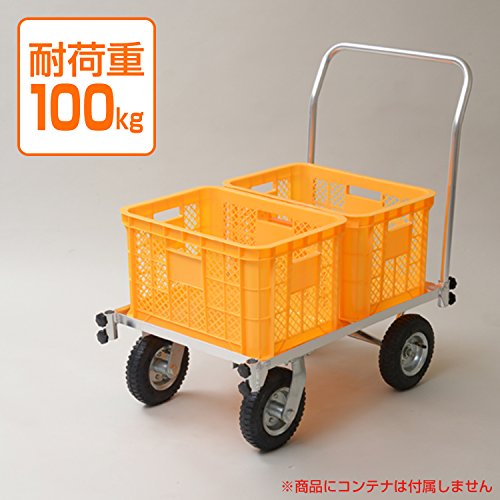 ●農業・園芸用の四輪キャリー●軽量のアルミボディで作業・運搬に便利●コンテナ2箱を積んで運べます●荷台サイズ:約54×77●耐荷重:100kg