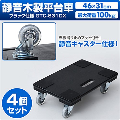 山善(YAMAZEN) 静音木製平台車(46×31) ブラック仕様 4個組 GTC-S31DX*4