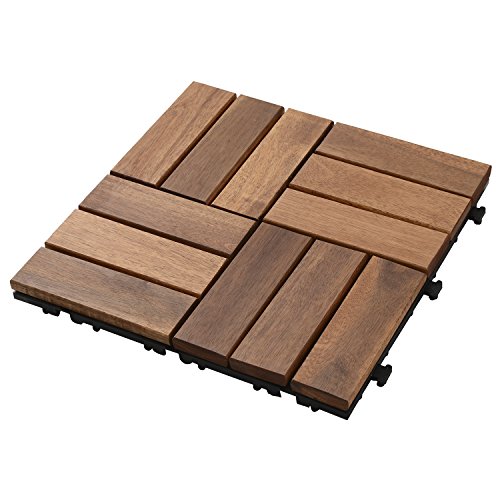 山善(YAMAZEN) 天然木ジョイントタイル(10枚組) ブラウン KAJT-12(BR)10P
